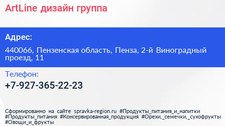 ArtLine, дизайн-группа по адресу 440066, Пензенская область, Пенза, 2-й Виноградный проезд, 11 в дальнейшем Организация, размещена в следующих категориях: