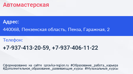 Автомастерская по адресу 440068, Пензенская область, Пенза, Гаражная, 2 в дальнейшем Организация, размещена в следующих категориях: