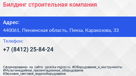 Билдинг, строительная компания по адресу 440061, Пензенская область, Пенза, Каракозова, 33 в дальнейшем Организация, размещена в следующих категориях: