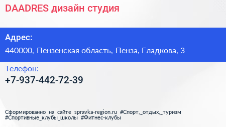 DAADRES, дизайн-студия по адресу 440000, Пензенская область, Пенза, Гладкова, 3 в дальнейшем Организация, размещена в следующих категориях: