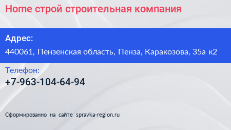 Home-строй, строительная компания по адресу 440061, Пензенская область, Пенза, Каракозова, 35а к2 в дальнейшем Организация, размещена в следующих категориях:
