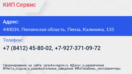 КИП-Сервис по адресу 440034, Пензенская область, Пенза, Калинина, 135 в дальнейшем Организация, размещена в следующих категориях: