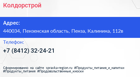 Колдорстрой по адресу 440034, Пензенская область, Пенза, Калинина, 112в в дальнейшем Организация, размещена в следующих категориях: