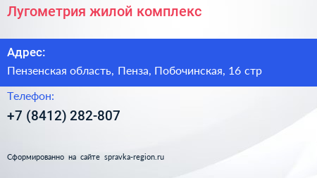 Лугометрия, жилой комплекс по адресу Пензенская область, Пенза, Побочинская, 16 стр в дальнейшем Организация, размещена в следующих категориях: