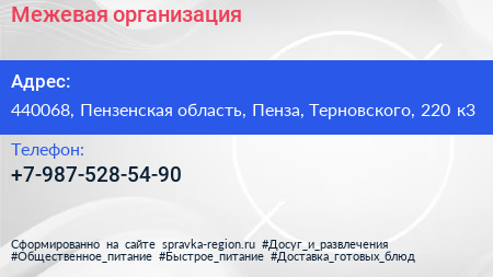 Межевая организация по адресу 440068, Пензенская область, Пенза, Терновского, 220 к3 в дальнейшем Организация, размещена в следующих категориях: