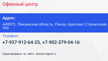 Офисный центр по адресу 440071, Пензенская область, Пенза, проспект Строителей, 39а в дальнейшем Организация, размещена в следующих категориях: