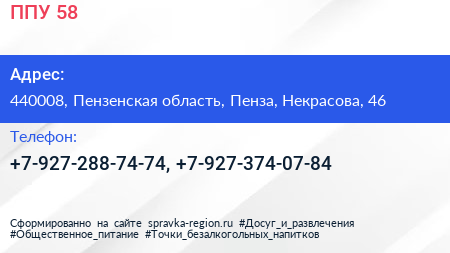 ППУ 58 по адресу 440008, Пензенская область, Пенза, Некрасова, 46 в дальнейшем Организация, размещена в следующих категориях: