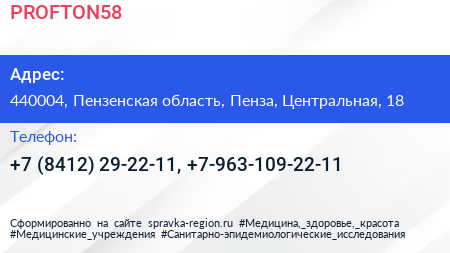 PROFTON58 по адресу 440004, Пензенская область, Пенза, Центральная, 18 в дальнейшем Организация, размещена в следующих категориях: