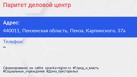 Паритет, деловой центр по адресу 440011, Пензенская область, Пенза, Карпинского, 37а в дальнейшем Организация, размещена в следующих категориях: