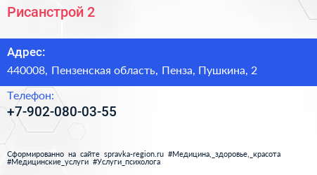 Рисанстрой-2 по адресу 440008, Пензенская область, Пенза, Пушкина, 2 в дальнейшем Организация, размещена в следующих категориях: