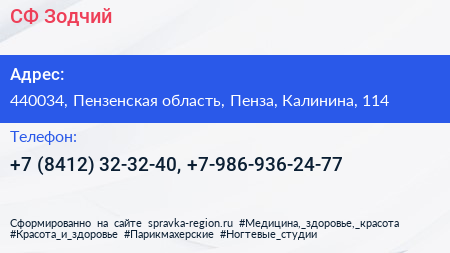 СФ Зодчий по адресу 440034, Пензенская область, Пенза, Калинина, 114 в дальнейшем Организация, размещена в следующих категориях: