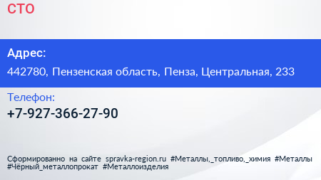 СТО по адресу 442780, Пензенская область, Пенза, Центральная, 233 в дальнейшем Организация, размещена в следующих категориях: