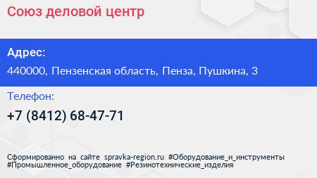 Союз, деловой центр по адресу 440000, Пензенская область, Пенза, Пушкина, 3 в дальнейшем Организация, размещена в следующих категориях:
