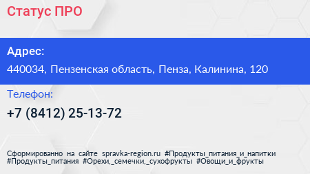 Статус ПРО по адресу 440034, Пензенская область, Пенза, Калинина, 120 в дальнейшем Организация, размещена в следующих категориях: