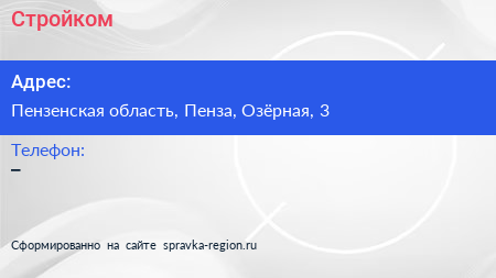 Стройком по адресу Пензенская область, Пенза, Озёрная, 3 в дальнейшем Организация, размещена в следующих категориях:
