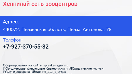 Хеппилай, сеть зооцентров по адресу 440072, Пензенская область, Пенза, Антонова, 78 в дальнейшем Организация, размещена в следующих категориях: