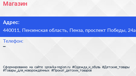 Магазин по адресу 440011, Пензенская область, Пенза, проспект Победы, 24а в дальнейшем Организация, размещена в следующих категориях: