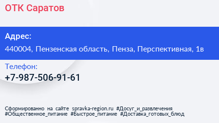 ОТК-Саратов по адресу 440004, Пензенская область, Пенза, Перспективная, 1в в дальнейшем Организация, размещена в следующих категориях: