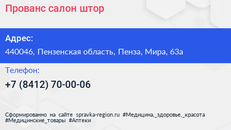Прованс, салон штор по адресу 440046, Пензенская область, Пенза, Мира, 63а в дальнейшем Организация, размещена в следующих категориях: