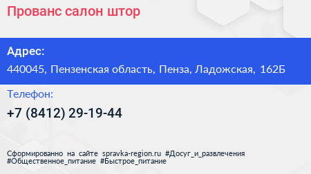 Прованс, салон штор по адресу 440045, Пензенская область, Пенза, Ладожская, 162Б в дальнейшем Организация, размещена в следующих категориях: