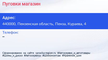 Пуговки, магазин по адресу 440000, Пензенская область, Пенза, Кураева, 4 в дальнейшем Организация, размещена в следующих категориях: