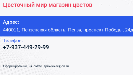 Цветочный мир, магазин цветов по адресу 440011, Пензенская область, Пенза, проспект Победы, 24д в дальнейшем Организация, размещена в следующих категориях: