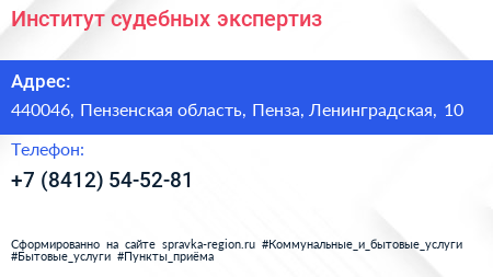 Институт судебных экспертиз по адресу 440046, Пензенская область, Пенза, Ленинградская, 10 в дальнейшем Организация, размещена в следующих категориях: