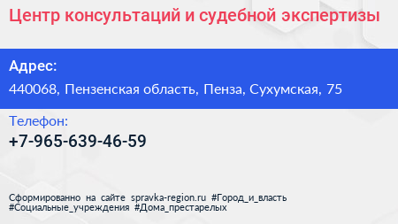 Центр консультаций и судебной экспертизы по адресу 440068, Пензенская область, Пенза, Сухумская, 75 в дальнейшем Организация, размещена в следующих категориях: