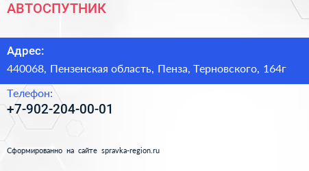 АВТОСПУТНИК по адресу 440068, Пензенская область, Пенза, Терновского, 164г в дальнейшем Организация, размещена в следующих категориях:
