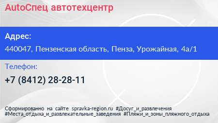 AutoСпец, автотехцентр по адресу 440047, Пензенская область, Пенза, Урожайная, 4а/1 в дальнейшем Организация, размещена в следующих категориях: