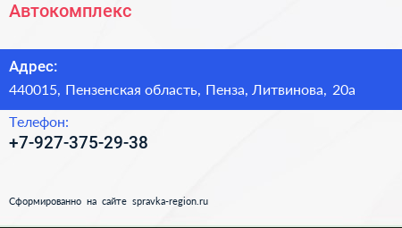 Автокомплекс по адресу 440015, Пензенская область, Пенза, Литвинова, 20а в дальнейшем Организация, размещена в следующих категориях: