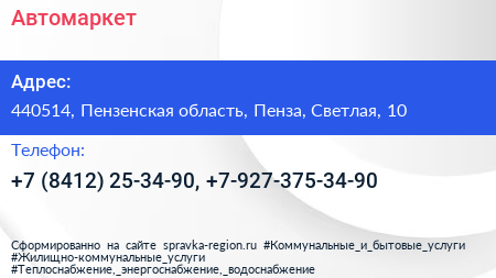 Автомаркет по адресу 440514, Пензенская область, Пенза, Светлая, 10 в дальнейшем Организация, размещена в следующих категориях: