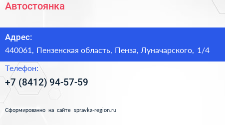 Автостоянка по адресу 440061, Пензенская область, Пенза, Луначарского, 1/4 в дальнейшем Организация, размещена в следующих категориях: