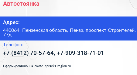 Автостоянка по адресу 440064, Пензенская область, Пенза, проспект Строителей, 77д в дальнейшем Организация, размещена в следующих категориях: