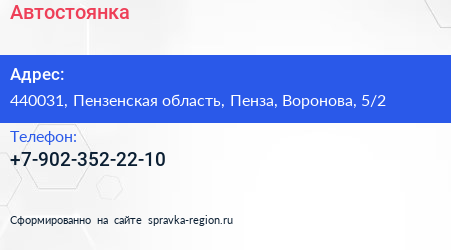 Автостоянка по адресу 440031, Пензенская область, Пенза, Воронова, 5/2 в дальнейшем Организация, размещена в следующих категориях: