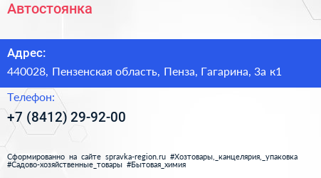 Автостоянка по адресу 440028, Пензенская область, Пенза, Гагарина, 3а к1 в дальнейшем Организация, размещена в следующих категориях: