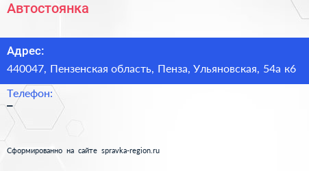 Автостоянка по адресу 440047, Пензенская область, Пенза, Ульяновская, 54а к6 в дальнейшем Организация, размещена в следующих категориях: