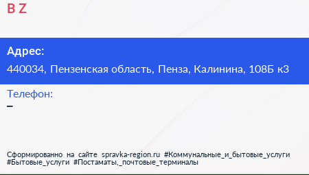 B & Z по адресу 440034, Пензенская область, Пенза, Калинина, 108Б к3 в дальнейшем Организация, размещена в следующих категориях: