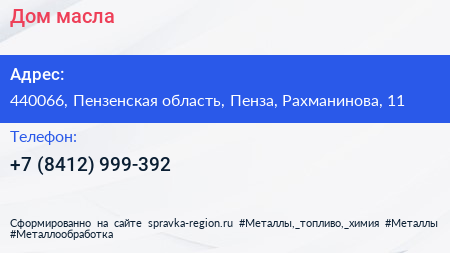 Дом масла по адресу 440066, Пензенская область, Пенза, Рахманинова, 11 в дальнейшем Организация, размещена в следующих категориях: