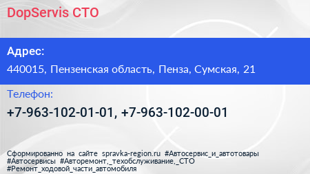 DopServis, СТО по адресу 440015, Пензенская область, Пенза, Сумская, 21 в дальнейшем Организация, размещена в следующих категориях: