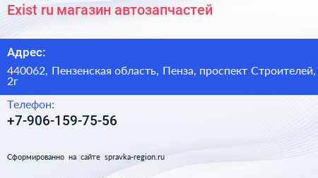 Exist.ru, магазин автозапчастей по адресу 440062, Пензенская область, Пенза, проспект Строителей, 2г в дальнейшем Организация, размещена в следующих категориях: