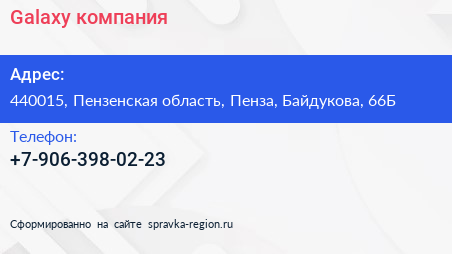 Galaxy, компания по адресу 440015, Пензенская область, Пенза, Байдукова, 66Б в дальнейшем Организация, размещена в следующих категориях: