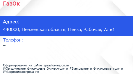 ГазОк по адресу 440000, Пензенская область, Пенза, Рабочая, 7а к1 в дальнейшем Организация, размещена в следующих категориях: