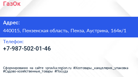 ГазОк по адресу 440015, Пензенская область, Пенза, Аустрина, 164к/1 в дальнейшем Организация, размещена в следующих категориях: