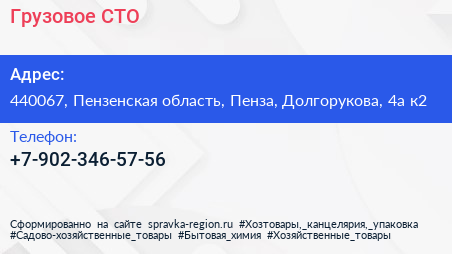 Грузовое СТО по адресу 440067, Пензенская область, Пенза, Долгорукова, 4а к2 в дальнейшем Организация, размещена в следующих категориях: