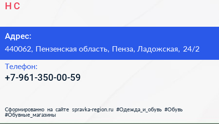 H & C по адресу 440062, Пензенская область, Пенза, Ладожская, 24/2 в дальнейшем Организация, размещена в следующих категориях: