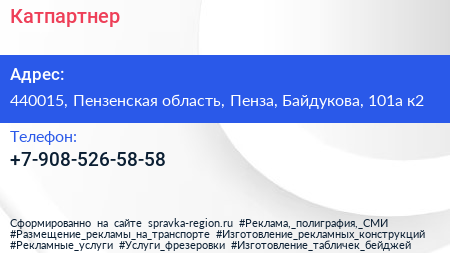 Катпартнер по адресу 440015, Пензенская область, Пенза, Байдукова, 101а к2 в дальнейшем Организация, размещена в следующих категориях: