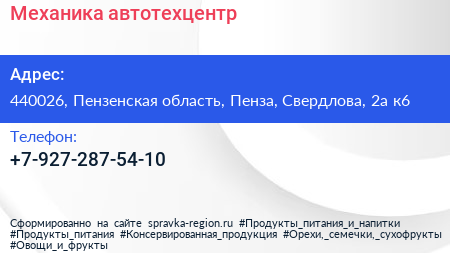 Механика, автотехцентр по адресу 440026, Пензенская область, Пенза, Свердлова, 2а к6 в дальнейшем Организация, размещена в следующих категориях: