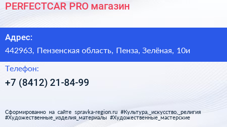 PERFECTCAR.PRO, магазин по адресу 442963, Пензенская область, Пенза, Зелёная, 10и в дальнейшем Организация, размещена в следующих категориях: