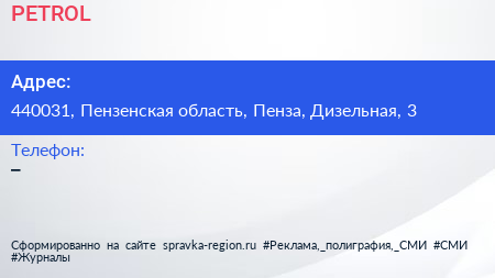 PETROL по адресу 440031, Пензенская область, Пенза, Дизельная, 3 в дальнейшем Организация, размещена в следующих категориях: